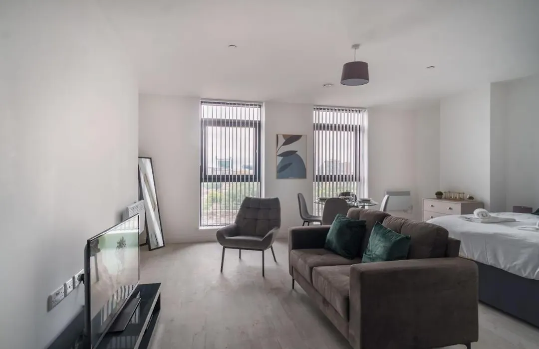 Modern Studio Apartment In Salford Great Views is located approximately 10 minutes' walk from the Lyric Lowry Theatre and about a 10-minute drive from The Palace Theatre. Staying at this apartment, set within close proximity of Lowry Outlet Shopping Mall, guests can avail themselves of a washing machine.
